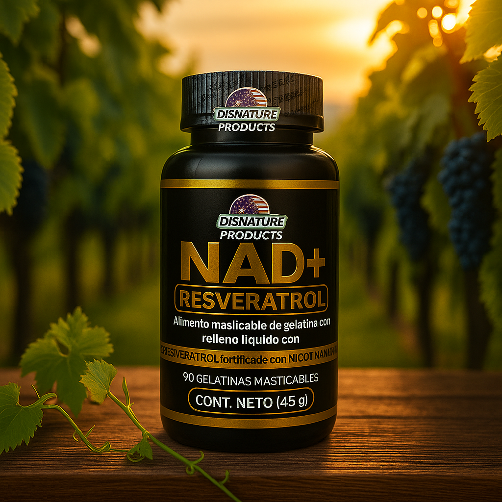 A medida que envejecemos, los niveles de NAD+ disminuyen de forma natural en nuestro cuerpo, afectando la energía, la vitalidad y el funcionamiento celular. El Resveratrol, reconocido por su potencia antioxidante, contribuye a proteger las células frente al daño oxidativo, mientras que el NAD+ apoya los procesos de longevidad celular.